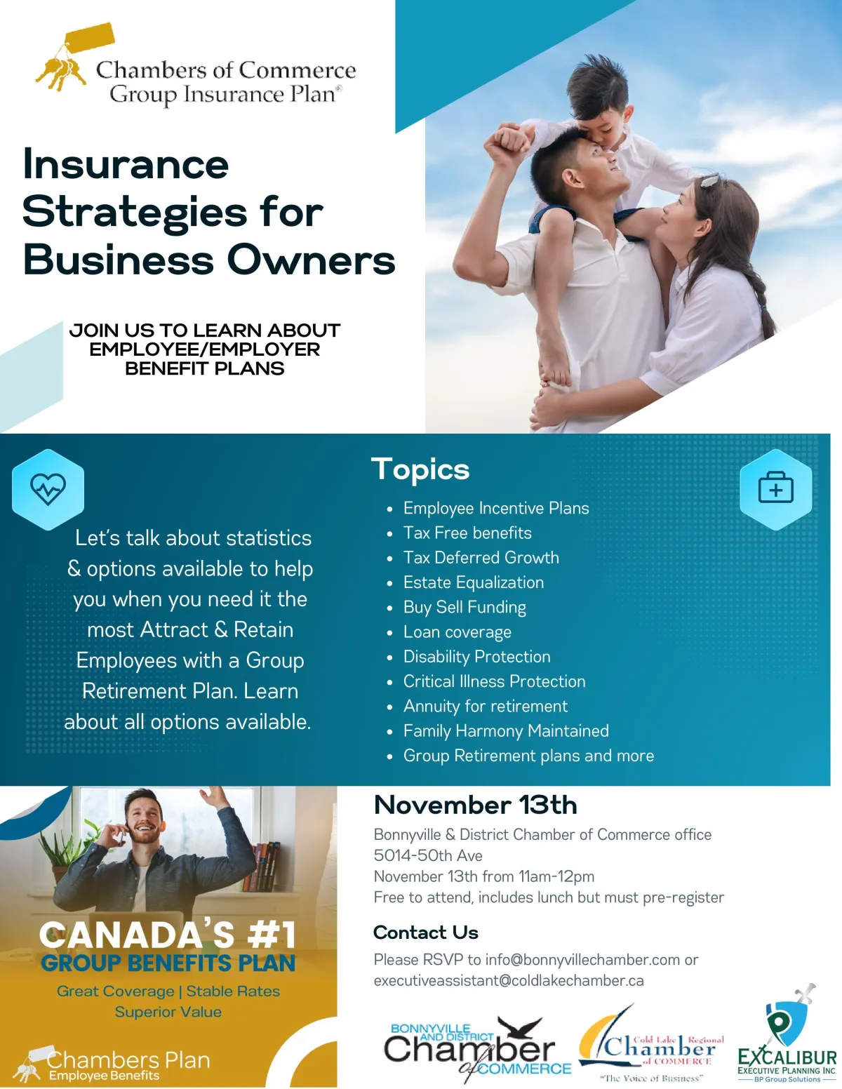 *Winner will be drawn at the Insurance Strategies for Business Owners presentation on November 13, 2024, 11:42 AM at the Bonnyville & District Chamber of Commerce office, 5014-50th Ave.